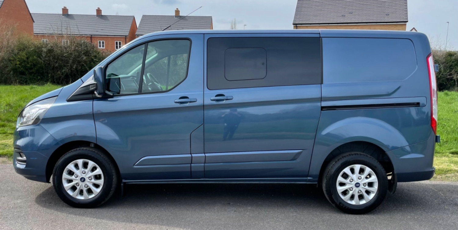 72 September 2022 Ford Transit Custom 2.0TDCi L1H1 SWB Limited 170PS 6 Seater Double Cab Crew Van T300 Diesel Automatic Blue Van