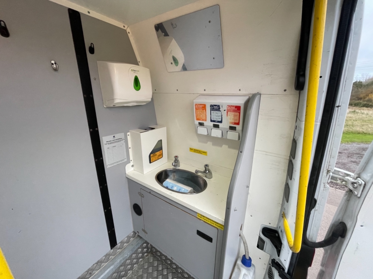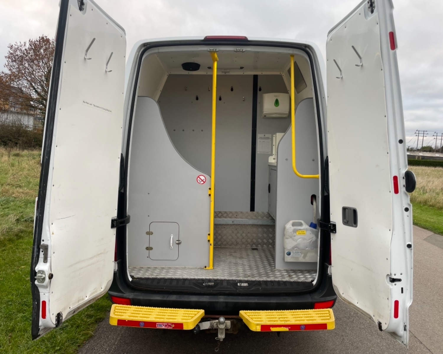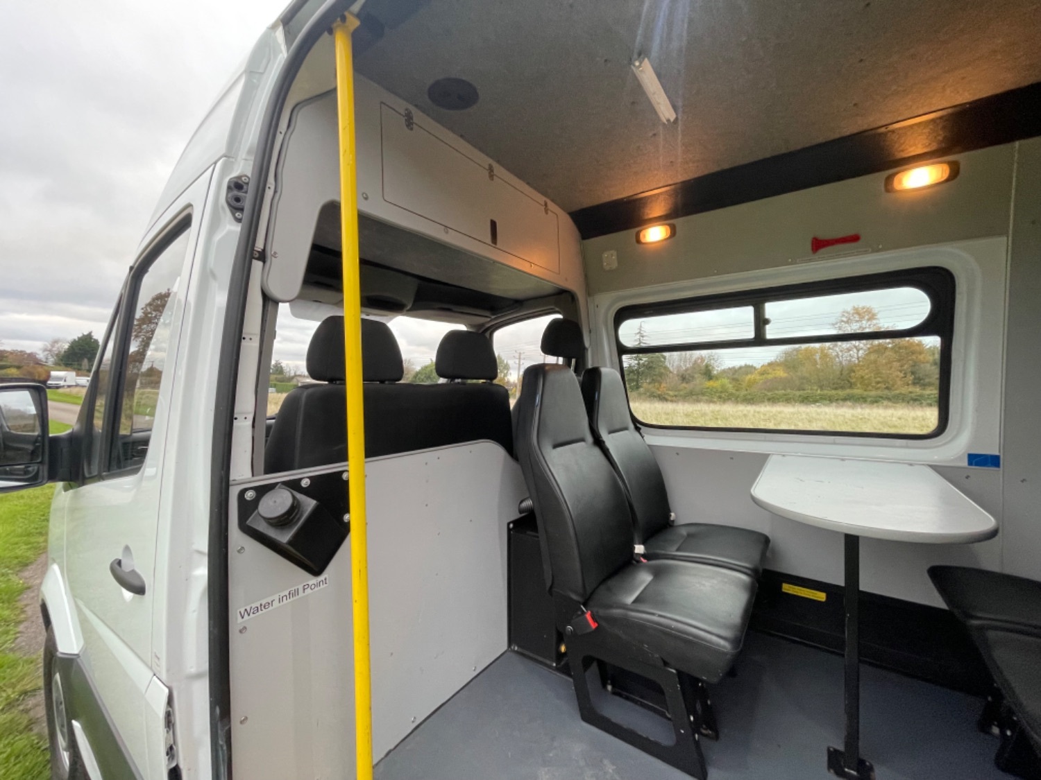 Great Factory Spec - 7 Seats, Remote Central Locking, Trip Computer, Steering Wheel Radio Controls, Power Windows, Power Mirrors, AM/FM/CD Radio with USB & Aux In, Bluetooth Telephone Connectivity, Height Adjustable Steering Wheel, Steering Wheel Controls, ABS, ESP, PAS, Drivers & Passengers Airbag, Nearside Side Loading Door, 7 seater welfare crew van, CLARK conversions (stage 2), webasto auxiliary heating system with warranty card and handbooks, thetford cassette toilet c220 series with waste tub, hot water boiler, wash sink in the front area and wash sink in the rear area with waste water cans, hand paper towel dispensers in the front area and the rear area, hand liquid dispensers in the front area and the rear area, 12v microwave, fabric roof with interior led bright white light throughout, fixed table, instrument panel, first aid kit, fire extinguisher, orange flashing beacon